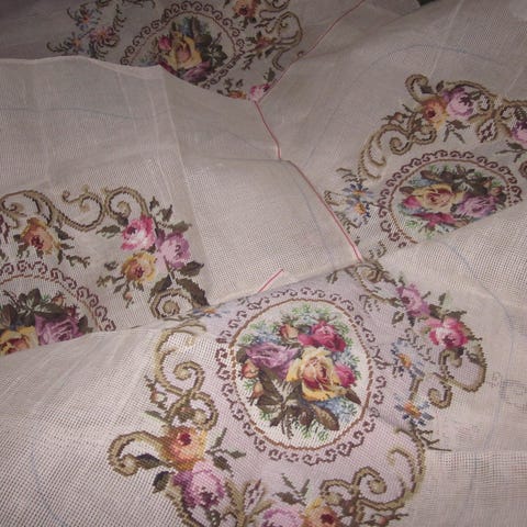 Har ligget i mange år, Har arvet det så vet ikke om det er kjøpt sånn eller om det er brodert.