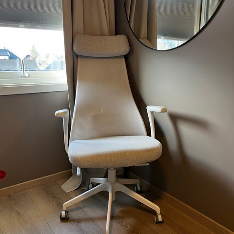 Hvit kontorstol for barn, med hjul og høydejustering.