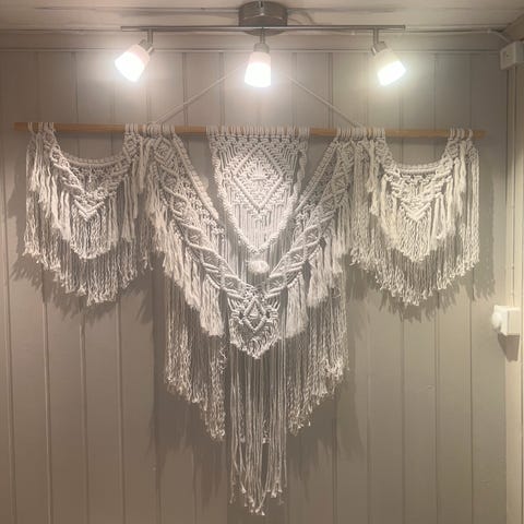 Flott makrame som ingen har maken til! Laget i garn med shimmer. Knytt i 3D.