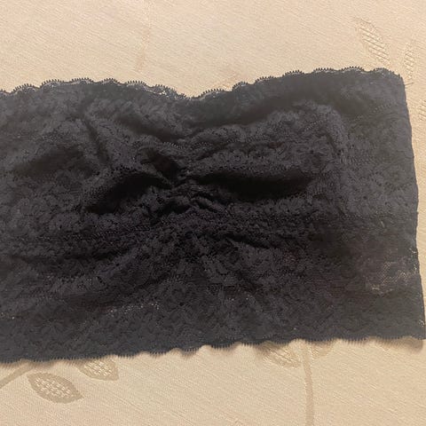 Bandeau bh fra Cubus str L. Svarte blonder. Innlagt padding som kan tas ut. Aldri brukt.