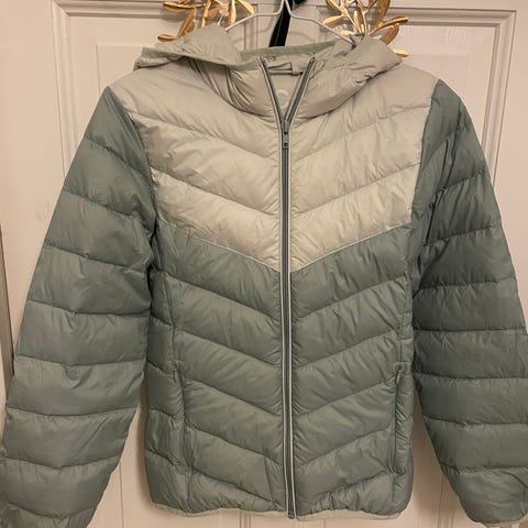 Tynn dunjakke med hette fra Cubus brukt av en jente.