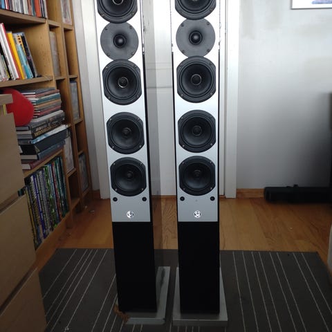 Pent brukte gulvstående høytalere merke Acoustic Research (AR), type 312 HO og Onkyo AV Receiver TX-RZ730 til salgs. Kabler til forsterker og høyttalere av høy verdi følger med. Medfølger fjernkontroll til revceiver.