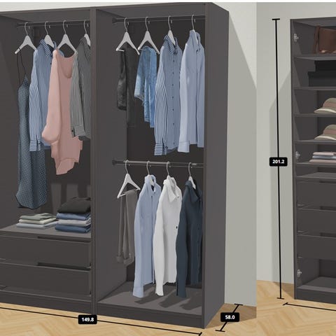 Led-lyslist til garderobe. Med sensor. 71 cm. Mørkegrå.