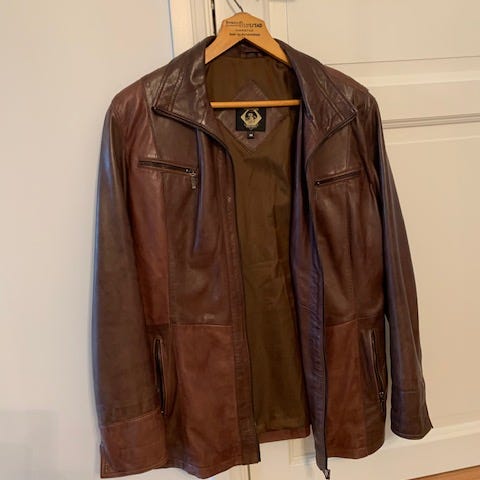 Brun skinnjakke str 44, ikke brukt. Kjøpt for 949kr på Bonprix