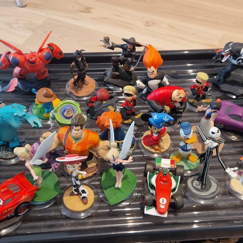 Selger min sønn sin samling av Lego dimensions. Jeg har kjøpt alle figurene selv her i Norge for noen år siden. Mange ble åpnet og brukt da, men det er også mange pakker som aldri ble åpnet da interessen til min sønn dabbet av. Jeg tok på meg jobben ved å blåse støvet av vår gamle Wii U og sjekket at alle figurene fungerer.