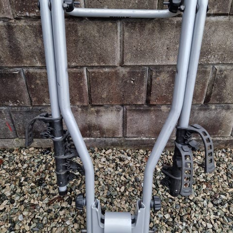 Thule sykkelstativ for 2 sykler. Har en liten brist i den ene skålen for hjul.