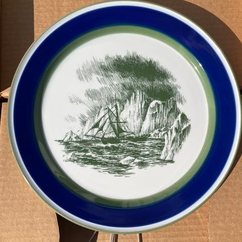 Vakkert landskapsmotiv håndmalt på porselen - m/bladgull malt ytterst og innerst på bildet -