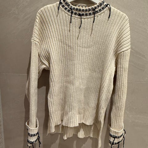 Pent brukt genser selges. Lite brukt, pent brukt. Nyvasket. Ikke ull. 53% acryl, 47% polyamide.
