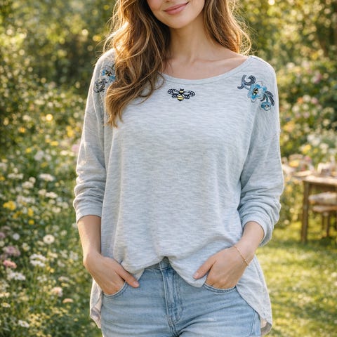 Herlig t shirt, ny akkurat pakket ut, motiv foran og grå bak, Str M merke Marie Philippe veil.kr 699,- Selges kr 300,-(13)