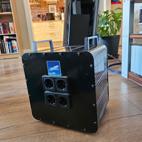 Strømskinnen er utstyrt med 5 stikkontakter med filter og 1 stikkontakt med DC-blokker, utgangskontaktene er Schuko-type og 1 inngangskontakt er IEC-type.