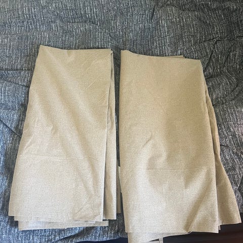 Selger 2 lysegrå gardinlengder som er foret. De er 140 cm brede og 220 cm lange. Det er med hemper bak for oppheng med kroker. De er kjøpt fra Ellos. Brukt 2 måneder bare og er som nye. Røyk- og dyrefritt hjem.