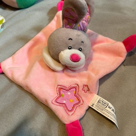 Søt koseklut kanin fra Tinka. Kosekluten har vært brukt av et barn og er vasket etter bruk.