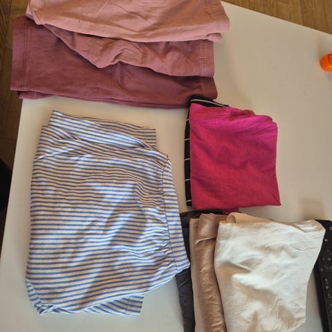 Pent brukt gymklær.2 av t-skorterne ble ikke brukt.