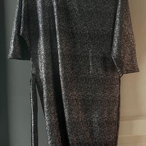 Knapp i nakken og glidelås i siden. Halvlange ermer med tynne blonder/lace.