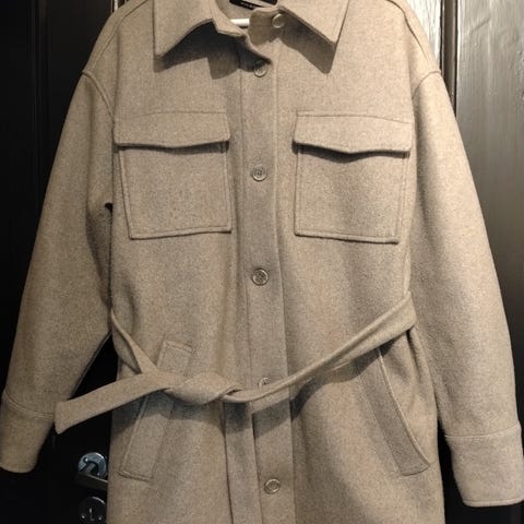 Veldig lite og pent brukt kåpe fra In Wear, str 36. Fin dus grønnfarge.