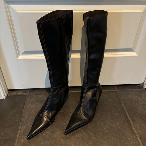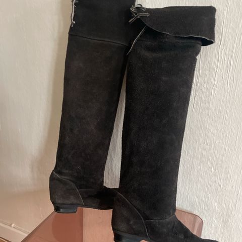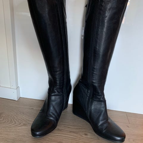 Flotte skinnstøvletter i sort skinn med strikk og spenner.