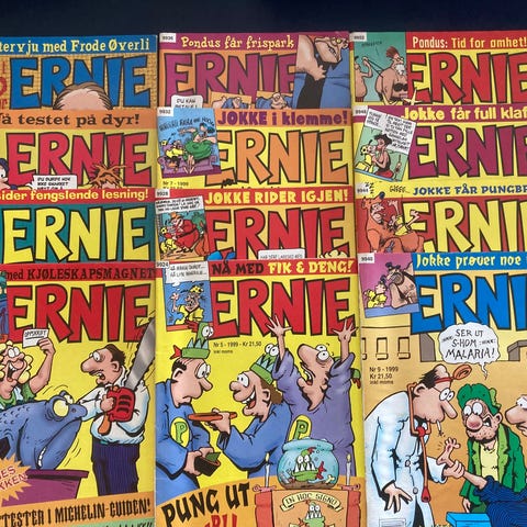 Dette her er 3 ernie blader. Selges for 20kr stykket eller så kan vi bli enige om en pris hvis du skal ha flere! Kan sendes eller så kan det hentes i Hønefoss, Nesbyen eller Oslo. Send melding hvis du lurer på noe🙂 Jeg har flere tegneserier ute på profilen min!