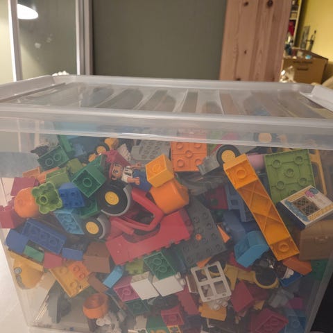 Selger Lego duplo med masse dyr, characters etc. Kasse 65L