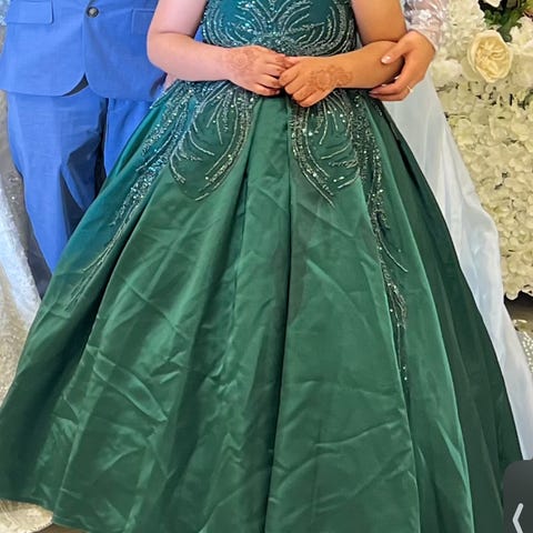 Pent brukt ballkjole str7-10år. 2-delt. Nedre del kan fjernes. Snøring bak. Ingen hull eller rift. Kommer fea dyr- og røykfritt hjem.