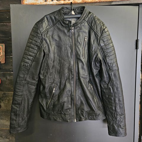 «Gustav» skinnjakke (100% lammeskinn). Str L (men føles som en M). Pent brukt- noen få bruksmerker(lysere skinn) på enkelte sømmer