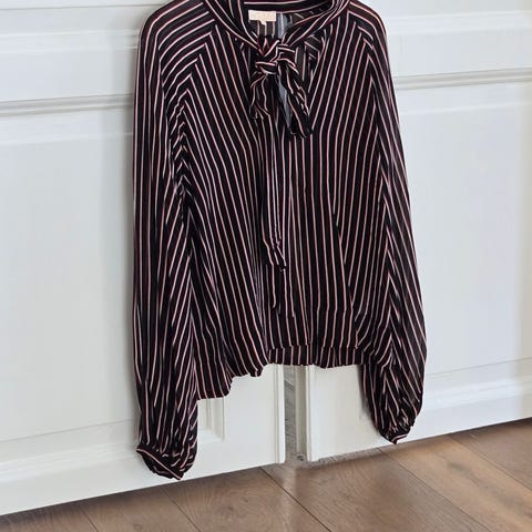 Klassisk by timo bluse, sort i bunnfarge med blomster print. Ingen bruksmerker.