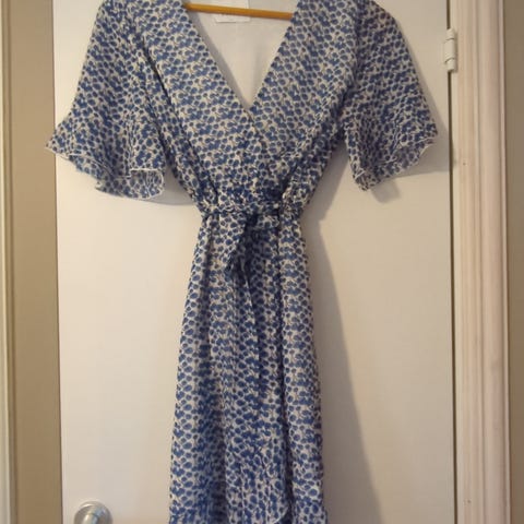 Blå kjole med prikker fra Pigalle. Strl. 34.