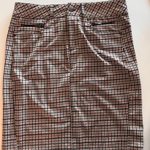 Fint rutet skjørt, meget god strech, strikk i livet, liten splitt i siden. Str S. Fra H&M