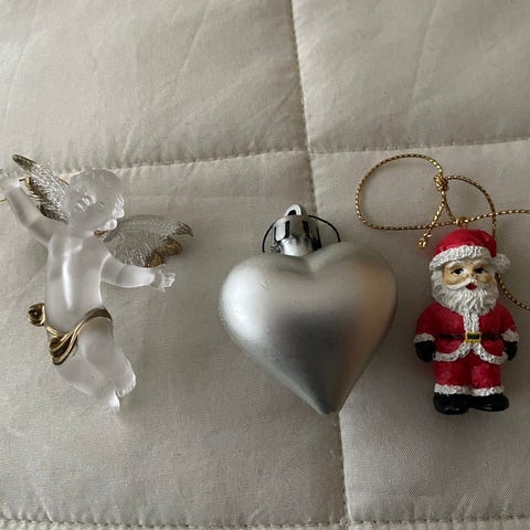 Åtte blomsterformede klyper i metall til å feste små lys på juletre, juledekorasjoner ol.