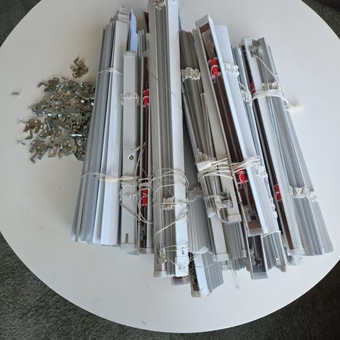 6 stykk ubrukte lameller med tilbehør. Størrelse 89 mm x 250. Selges da jeg ikke trengte mer enn to.