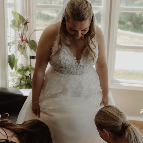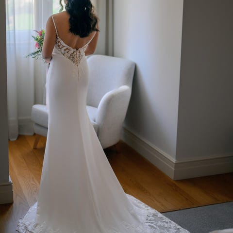 Selger med tungt hjerte min vakre brudekjole fra Stella York (modell 6793) i Ivory laget av tyll og blonder. Kjolen er kun brukt en gang og kjøpt på drømmekjolen i Vennesla til 17.400 + 2500 for justering/tilpasninger. Den er renset på renseri i Oslo (Kvittering kan fremvises), men hadde en flekk som ikke var mulig å få bort på rens, men dette ble løst ved å håndbrodere en blonde over flekken slik at den ikke lengre er synlig (se bilde).