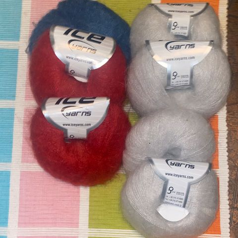 Blandet garn, ull og akryl. Kr 150 pr stk. Kun 1 IGJEN!