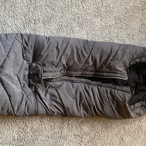 Sovepose i brukt men godt tilstand, med fleece inni. Universal, kan brukes til flest barnevogner