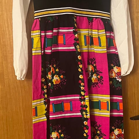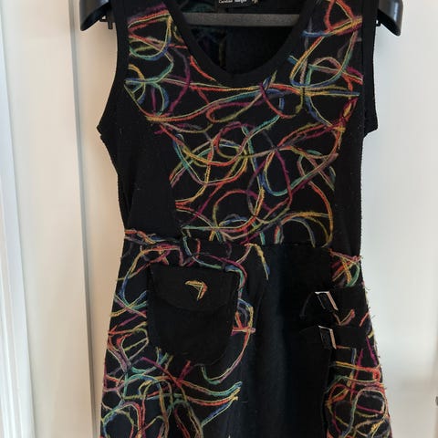 Spansk designerkjole. Tror ikke brukt. Hengt lenge i skapet.