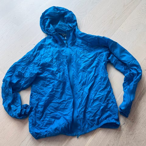 Superlett vindjakke i Ultralight Nylon for tur og fritid. Jakken er vindtett og vannavvisende. Beskytter mot UV-stråler. Fast hette. Lomme på venstre arm til nøkler og annet småtteri. Tar minimalt med plass i sekken eller sykkelveska.