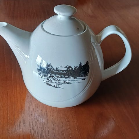 Muggen er i pen stand. I botten er det en hårsprekk, men den er ikke synlig innvendig. Har testet og muggen er tett.