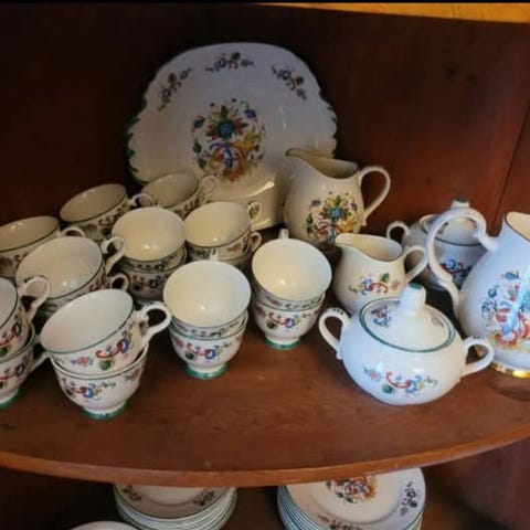 Selger 12 tallerkener og 15 dype tallerkener fra dette servicet fra firkløveren. Selges samlet for 5000 kr.