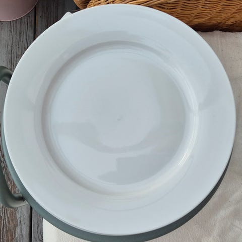 Middagstallerken og asjett/desserttallerken samt vannglass.
