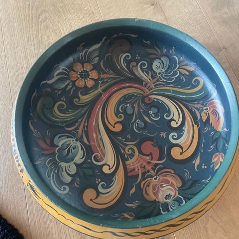 Engelsk blikkfat/serveringsbrett med påmalte blomster