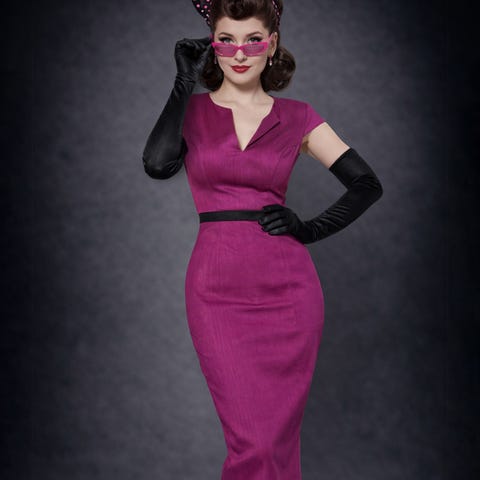 Figursydd kjole med stropper og volanger, hvit med røde polkadots.
