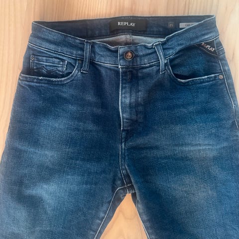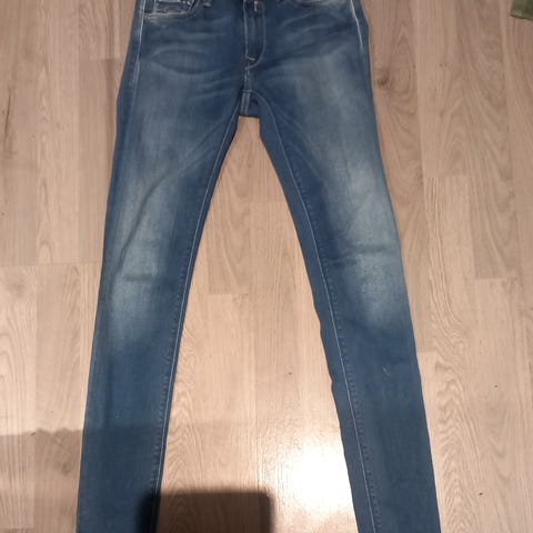 Meget pent brukt Replay Luzien jeans str 24 med fantastisk strech selges da den har blitt for liten. Ingen bruksmerker. Selges billig. 250kr