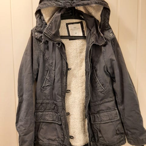 Gis bort. Godt brukt, men mye jakke igjen, tror den blir litt finere etter en runde med strykejernet. Uforet, passer fint på vår/høst. Må hentes i Ottestad.