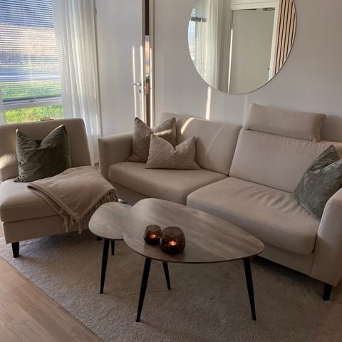 Mål på sofaen finnes under bilder.