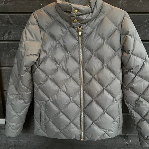 En stilig og tidløs jakke som passer til alt. Jakken er vattert og fylt med dun, så den er både lett og varm. Høy og god krage. Trykknapper foran og store lommer på begge sider. Diamantformet quiltemønster.
