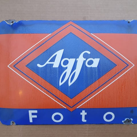 Agfa, Agfacolor, reklameskilt, vintage foto, retro dekor, fotohistorie, Made in Germany, 1960-tallet, analog foto, samlerobjekt.