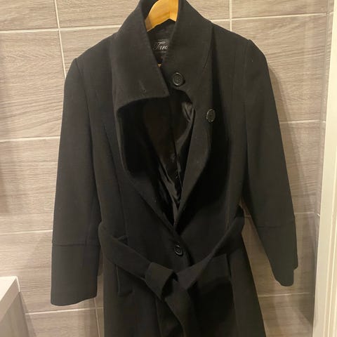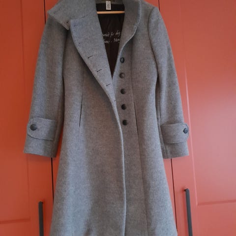 Pent og lite brukt kåpe merke Mastex Exclusive str.48. Blå kåpe med svart farge på sidene. 70% ull. Selges for stor.