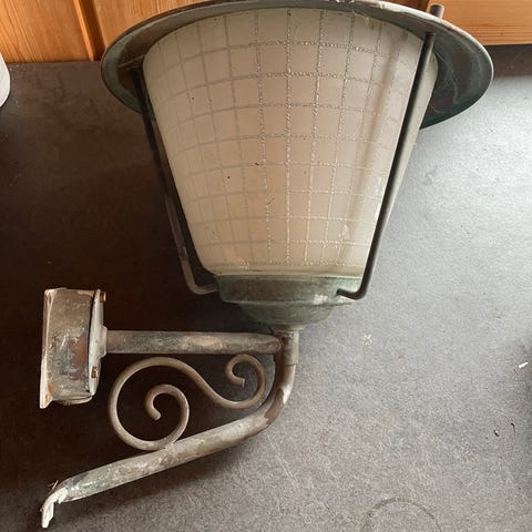 Hel og fin. Original pæreholder er skrudd av og kan enkelt skrus på.