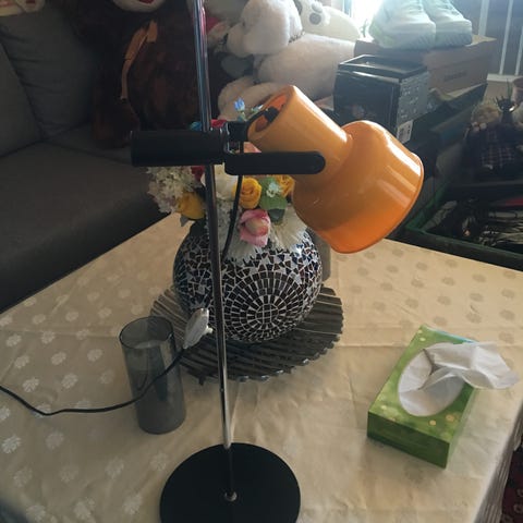 Kul rund bordlampe med led, kjøpt på lampegiganten
