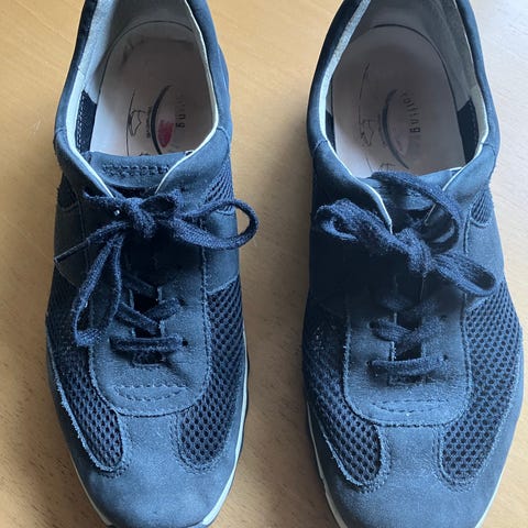 Fantastisk gode sko selges da jeg rydder i mine skatter. Hogan er kjent for sin gode lest og fine look. Disse er i nydelig semsket skinn i klassisk mørk blå. Fine detaljer i sølv og den hvite sålen gjør skoen superfin og se på . Mye sko igjen for en fornuftig pris. Nypris 3500