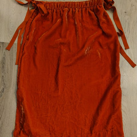 Flott skjørt i 100% silke, foret men usikker hva slags materiale det er i foret. Sydd av skredder. Splitt bak. Kan legges opp og ned. Livvidde 85 m, lengde 98 cm. Nydelig lillafarge . Flott til bryllup og fest. Lavendelfarge. Vanskelig å få bilde av rett farge