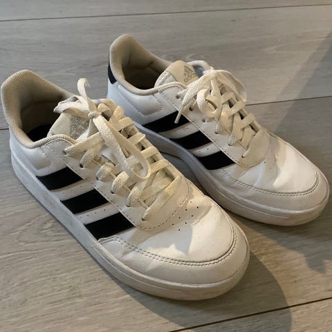 Skoene er av type Adiprene + Størrelsen er oppgitt til 40 2/3, US: 7 1/2 og UK: 7. Skoene er laget i Vietnam og overlær og detaljer semsket ekte skinn.